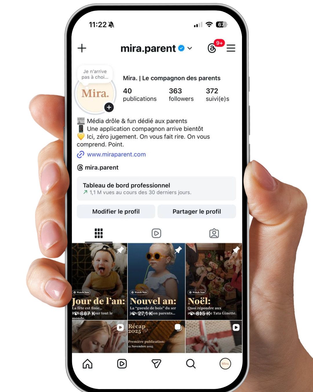 Mira. est un espace de contenus drôle et fun qui valorise la diversité des parentalités et aide chaque parents à se reconnecter a sa propre façon de faire.
